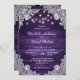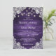 Nuestras rústicas invitaciones a bodas moradas con luces de cuerda y encaje floral blanco sobre un fondo de madera de granero son perfectas para invitar a sus invitados a su rústico campo morado, patio trasero o fiesta de bodas de granero.