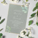 Celebra tu amor en un estilo atemporal con nuestra elegante invitación a la boda verde sabio. Está inspirado en la belleza de la naturaleza y cuenta con una delicada vegetación de eucaliptos acuáticos que le confieren un toque botánico. La sencillez de la escritura caligráfica manuscrita da una elegancia moderna, prometiendo una celebración llena de sofisticación y gracia. Bienvenidos a un día en el que cada detalle refleja la esencia de la belleza natural y el amor eterno.