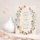 Invitación de Boda Silvestre Boho. Esta elegante y sofisticada invitación de boda cuenta con hermosas flores silvestres pintadas a mano en acuarela dispuestas en una encantadora corona perfecta para bodas de primavera, verano u otoño. Encuentre artículos coincidentes en la Colección de Boda Silvestre Boho.