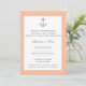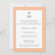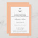 Podrá navegar hasta su gran día con esta elegante invitación a la boda náutica simple Peach Anchor, con un motivo de ancla atemporal y un refinado diseño de moda costera. Combinando con gusto el guión elegante y la tipografía moderna, esta invitación pone de relieve los nombres de los novios junto a los detalles de sus bodas en un diseño limpio y sofisticado. Perfecto para celebraciones marítimas o costeras, este diseño capta el espíritu de un boda costero y añade un toque de encanto clásico. Un magnífico comienzo para tu suite de papelería para bodas náuticos.
