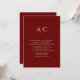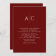 Invitación Boda simple de monograma rojo de Crimson