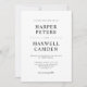 Simple invitación a la boda de tipografía blanca y negra. Presenta un diseño elegante y clásico. Haga clic en el botón personalizar para personalizar este diseño con sus detalles.