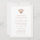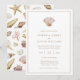 Invitación de Boda Simple en la Playa. Única y elegante, esta invitación de boda de playa moderna y simple presenta hermosas conchas de mar pintadas a mano, coral y estrellas de mar en tonos neutros de tierra. El texto es de color beige, y el fondo es blanco. La parte posterior incluye un patrón caprichoso de conchas de mar. Encuentre artículos coincidentes en la Colección de Boda de Playa de Acuarela de Conchas de Mar.