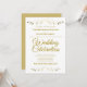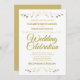 Esta hermosa invitación a la boda presenta un diseño sencillo pero elegante de escritura dorada sobre un fondo blanco con bordes florales de Relieve metalizado de imitación dorada. Bienvenido a sus invitados a compartir su día especial de celebración de bodas con estas magníficas invitaciones con textos de oro. Diseñada para coordinar con nuestra suite Relieve metalizado dorado Elegant Wedding, esta invitación es sobria y formal, pero aun así moderna y moda.