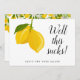 Esta divertida tarjeta de cambio de fecha de boda simple de limones, ¡Bueno, esto apesta! Se puede personalizar con la información de su aplazamiento. ¡El reverso tiene detalles adicionales! Diseñado por Thisisnotme©