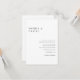 Esta invitación de boda en negro y blanco refleja la elegancia atemporal de la historia de su amor. Con su diseño minimalista y clásico, transmite hermosamente la alegría y el romance de su día especial. Perfecto para parejas que buscan una forma asequible pero elegante de invitar a seres queridos a celebrar un momento que siempre recordarán.
