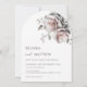 Esta elegante invitación de boda contemporánea con arco presenta flores y sombras de blush y blanco tridimensionales.