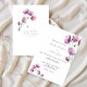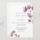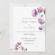 Invitación floral de verano suave morada suave boda suave de color púrpura suave, diseñada con cúmulos florales en tonos suaves violetas, acentuados con delicados brotes verdes. El texto principal incluye: Junto con sus familias, los nombres completos de la novia y de Groom, solicitar el honor de su presencia en su Boda, la fecha, hora, ubicación y dirección, con recepción para seguir la nota, en un fondo blanco. El texto inverso incluye: Tus detalles de RSVP sobre un fondo blanco con acento de flores moradas suaves. Para personalizar, simplemente inserte los detalles del evento en nuestra plantilla sencilla, reemplazando el texto del ejemplo. Asegúrese de ver toda la colección floral de verano suave Boda Soft Purple Petite para tarjetas y accesorios a juego. Esta invitación está disponible tanto en versión impresa como en versión de descarga.