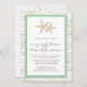 Esta sencilla invitación a bodas en la playa presenta un aspecto de madera encalada bordeada de agua/verde menta. El punto central de la invitación es un par de elegantes estrellas de mar. Colores Personalizados disponibles bajo petición.