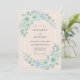 Este diseño presenta una paleta serena de tonos verde menta, azul polvoriento y melocotón suave. Delicadas rosas y hortensias de acuarela crean una atmósfera romántica perfecta para un evento etéreo. El exuberante follaje frondoso proporciona un toque botánico que evoca la frescura de una pradera primaveral. Las texturas de acuarela ofrecen una estética elegante y sofisticada para un evento atemporal.