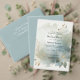 Invite a sus huéspedes en una elegancia intemporal con esta hermosa invitación de boda de la colección Soft Golden Dusty Blue Romance. Con sus suaves acuarelas en azul polvoriento y verde sabio, este diseño está delicadamente acentuado con sus elegantes ilustraciones dorados florales, que le confieren un toque botánico sofisticado y moderno. La suave paleta de colores y el sutil brillo hacen que sea perfecto para bodas románticas en el jardín, magníficas fiestas o cualquier celebración tocada por el encanto de la naturaleza. Completamente personalizable con los detalles de su evento, esta invitación es una forma serena y elegante de anunciar su gran día.