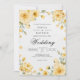 Delicadas flores amarillas doradas se dispersan por este diseño etéreo. Un suave efecto acuarela aporta un toque de romanticismo y encanto a esta hermosa composición. Ideal para una ocasión animada y alegre.