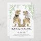 Relájese con esta divertida invitación a bodas con la temática de los dinosaurios con una divertida novia de dinosaurios y follaje de eucalipto de color de agua y de novio. Fácil de personalizar con los nombres de novios y novios, la fecha del boda y todos los detalles del lugar del boda en escritura moderna de tipografía. Ilustraciones divertidos T-Rex dino bride y groom en tonos marrones con vegetación acuática botánica en tonos verdes. Obra de arte original única en dino de la artista Catherine Sweetman