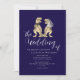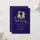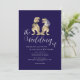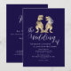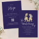 Invitación de boda con código QR de dinosaurio azul marino y blanco | Diseño elegante y moderno de novios T-Rex
