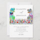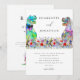 Agrega un rugido de emoción a tu boda con esta divertida y colorida invitación de boda con tema de dinosaurios. Con una encantadora novia y novio T-Rex que se mantienen orgullosamente en pie en un impresionante prado de flores silvestres en acuarela, esta invitación estalla con vibrantes tonos de azul, púrpura, rosa, rojo, amarillo y verde al igual que tu historia de amor. La pareja de dinosaurios juguetones, ilustrados en un estilo encantador y caprichoso, establece el tono perfecto para una celebración jurásica ligera y divertida.