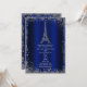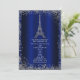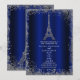 Invitación Boda Torre Eiffel Brillo Plateado Azul Real