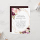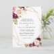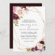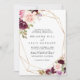 Esta rústica invitación a la boda tradicional floral geométrica y dorada es perfecta para un boda moderno. El diseño está decorado con flores y follaje pintados a mano y coloridos, elegantemente dispuestos en bonitos ramos, adornando un marco geométrico dorado.