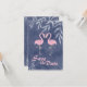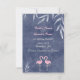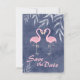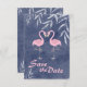 Flamingos Rosados Bonitos en un Fondo de Playa Tropical Azul Oscuro Grungy Anuncios de Boda Guardar la Fecha.