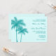 Invitaciones caseras modernas con temática de playa con verde azuladas palmeras azules. Un diseño simple y limpio perfecto para una boda de destino.