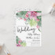 Un diseño tropical que abraza la belleza tranquila de la naturaleza mezclada con un toque juguetón que seguramente te hará divertirte. Una mezcla de calmantes hojas tropicales verdes, incluyendo hojas de plátano, palmas, hojas de monstera y plantas de princesa rosa, junto con flores de orquídea púrpura-rosa y flor de protea, entrelazadas con varios otros follajes. Añadiendo un elemento de diversión, un fondo de 'punto desordenado' o 'punto dálmata' negro en la parte posterior infunde el diseño con un toque juguetón (puedes quitarlo si lo deseas). Mejorado por una fuente manuscrita moderna, esta impresión encantadora irradia encanto y sofisticación. Este diseño versátil trae un sentido de paraíso tropical a cualquier entorno u ocasión especial, haciéndolo perfecto para una boda de destino, o simplemente cuando deseas agregar un toque tropical. Invitación de boda tropical floral acuarela chic moderna