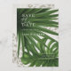 Anuncie su gran día con esta elegante vegetación tropical Guardar la tarjeta de fecha. Con exuberantes hojas de palma y de monstera con suaves notas de leopardo, este diseño es perfecto para una boda de destino o un tema botánico moderno. Personalice fácilmente con sus nombres, fecha y ubicación para que sea verdaderamente suyo. Texto totalmente personalizable, Diseño botánico tropical elegante, Ideal para bodas, edificaciones o renovaciones de votos