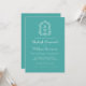 Este elegante diseño de invitación a la boda de inspiración vintage presenta un par de iniciales en monograma blanco con una fuente serif abierta por encima y por debajo de una línea divisoria y rodeado por una línea de arte acanthus escudo sobre un fondo turquesa. La parte trasera de la tarjeta es turquesa sólida.
