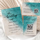 Invite a sus seres queridos a celebrar su día especial con esta elegante invitación a bodas en la playa, con una impresionante costa de color agua en tonos azules y beige arenoso. Con caligrafía moderna y tipografía limpia, esta invitación es ideal para bodas costeras, costeras o de destino. Personalizable completo con los nombres de la pareja, fecha de boda, hora, ubicación y detalles de RSVP. Una mezcla perfecta de romanticismo y belleza de inspiración playera.