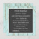 Fun verde azulado tablero de madera de granero azul "Hot Dang!" invitación rústica a una boda campestre en madera de grano. Esta verde azulada invitación a la boda en madera de granero rústico y azul es fácilmente personalizada para su evento.