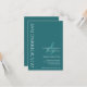 Presentando esta invitación a la Boda de Elegancia Moderna, una mezcla de moda de simplicidad y sofisticación a la medida de su elegante celebración de Emerald Green. El diseño minimalista, con una fuente contemporánea, desprende un encanto moderno. Explore la colección para personalizar de su suite con complementos opcionales para asegurarse de que cada detalle refleja su estilo único. Pida hoy estas Invitaciones a la Boda de Elegancia Moderna y establezca el tono para un boda que combina a la perfección el estilo moderno con la sofisticación atemporal.