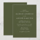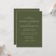 Esta elegante invitación a la boda incluye los nombres y apellidos de la pareja y los detalles bodas con letras blancas nítidas y un rico fondo verde oliva. Los modernos acentos de escritura caligráfica añaden un toque de sofisticación atemporal al diseño, creando un aspecto elegante y natural. Perfecto para bodas en cualquier temporada, esta invitación es ideal para parejas que buscan una estética refinada, clásica y orgánica para su día especial.