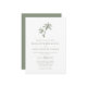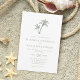 Esta sencilla y mínima invitación a una boda tropical en la playa cuenta con dos palmeras en la parte superior, con un elegante texto clásico, en un esquema de color blanco y verde sabio, con la coordinación del verde sabio en la parte posterior.