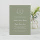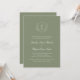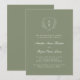 Invitación de Boda Verde Salvia. Esta elegante invitación de boda presenta una cresta blanca de hojas con el monograma de la novia y el novio en un fondo verde salvia. El texto es blanco y la parte posterior de la invitación es verde salvia. Esto es parte de la colección Minimal Crest & Leaves.