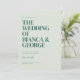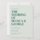 La tarjeta de diseño de Belmont muestra los nombres de la pareja con un gran tipo de letra negrita, creando una pieza central visual que habla mucho. A medida que echan un vistazo por encima y por debajo, los detalles esenciales de la celebración se presentan con elegancia en un pequeño y clásico tipo de letra serif. En la parte trasera hay un lienzo para otra hermosa foto de la pareja, que permite echar un vistazo a su viaje compartido. Un mensaje personalizado, cuidadosamente diseñado por la pareja, agrega un toque cálido e íntimo, invitando a los seres queridos a unirse a la celebración de su unión.