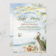 Podrá sumergirse en las festividades junto a la playa, donde las olas se encuentran con la arena, y el amor está en el aire. Envuelto en blues tonos azules y arenosos, nuestra invitación incluye un impresionante vestido boda, que simboliza la elegancia y el romanticismo de la ocasión. Con champán, cócteles y flores tropicales, esta invitación promete una celebración tan hermosa como la futura novia. Haga clic en personalizar/personalizar para editarlo más adelante.