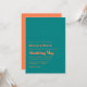 Invitación al coral simplista y a la tipografía retro verde azulada.