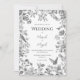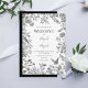 Elegante diseño en toile blanco y negro de flores, mariposas y pájaros rodean los tipos de letra y tipografía perfectos para esta encantadora invitación a la boda. Un bonito reverso negro de coordinación para acentuar el magnífico diseño de la tela añade elegancia a esta invitación. La invitación nupcial perfecta para cualquier boda de temporada.
