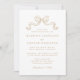 Nuestra invitación a la boda Vintage Elegance Bow es una mezcla perfecta de encanto atemporal y sofisticación moderna. El elegante ilustracion artístico de línea de un arco en la parte superior, emparejado con letras doradas y delicados acentos de escritura caligráfica, crea un diseño clásico y contemporáneo. Ideal para las parejas que buscan un toque vintage para su día especial, esta invitación exuda gracia y formalidad. El contraste de oro y blanco garantiza una experiencia lujosa e inolvidable para sus huéspedes. Haz una declaración que trascienda el tiempo con nuestra invitación a la boda de Bow con Elegancia Vintage - una presentación muy bien hecha al romance eterno de tu día de boda.