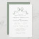 Nuestra invitación a la boda Vintage Elegance Bow es una mezcla perfecta de encanto atemporal y sofisticación moderna. El elegante ilustracion artístico de línea de un arco en la parte superior, acompañado de letras verdes de salvia y delicados acentos de escritura caligráfica, crea un diseño clásico y contemporáneo. Ideal para las parejas que buscan un toque vintage para su día especial, esta invitación exuda gracia y formalidad. El contraste entre blanco y verde sabio garantiza una experiencia lujosa e inolvidable para sus huéspedes. Haz una declaración que trascienda el tiempo con nuestra invitación a la boda de Bow con Elegancia Vintage - una presentación muy bien hecha al romance eterno de tu día de boda.
