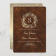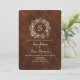 Establezca el escenario para una celebración atemporal con nuestra Elegante Invitación Rustica de Boda de Madera. Esta invitación, elaborada con un encanto clásico, presenta un delicado encaje floral dorado y un refinado monograma en la parte superior, que le aporta un toque de sofisticación. Con un sencillo guión moderno de caligrafía, exudan elegancia y estilo. Disfrute de la calidez de la madera rústica y del encanto del diseño vintage invitando a sus huéspedes a compartir su día especial.