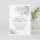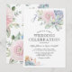 Tarjetas de invitación de boda elegantes con un fondo blanco clásico, una exhibición de acuarela de flores pastel y suculentas, y una plantilla de boda elegante que es fácil de personalizar.