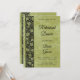 ¡Fáciles de personalizar invitaciones para la cena de ensayo de la boda! ¡Simplemente agregue su información! Haga clic para cambiar el estilo o tamaño de la letra. Ilustración vintage de amor y romance con un borde decorativo floral de vides victorianas sobre un fondo verde variado. Una encantadora opción para una boda casual al aire libre en un jardín en una bodega o viñedo.