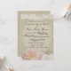 El antiguo jardín de peones a la antigua en magníficas tonalidades rosas sobre el romántico encaje vintage y la burlap. Hermosa invitación para añadir un toque de romanticismo a su boda.