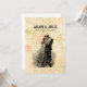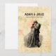 Un diseño clásico de invitación de boda vintage que presenta una pareja de hombre y mujer anticuados con ropa elegante y un fondo de estilo de papel con flores antiguas y letra script. Agregue sus nombres personalizados o su propio texto personalizado o deje la segunda línea de texto opcional en blanco. ¡Perfecto para bodas, aniversarios, Día de San Valentín y más!