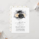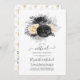 Elegante invitación a la ceremonia de boda virtual en línea floral en negro y oro de larga distancia con un falso patrón de abeja de Relieve metalizado de oro en el personalizable inverso a los detalles de tu evento.
