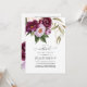 Flor de peones pastel acuarela en línea invitación a boda virtual de larga distancia con acentos de ciruela y violeta.