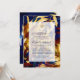 Invitación a la ceremonia virtual de bodas de larga distancia en línea con un lujoso patrón de jungla en tonos azules, burdeos y oro.