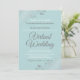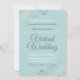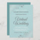 Solo porque te hayan obligado a llevar a tu boda a una ceremonia virtual, no significa que no puedas enviar hermosas invitaciones. Esta elegante invitación cuenta con elegantes letras de guion gris blanco sobre un fondo verde azulado pálido con imitación de Relieve metalizado floral de plata lacada o rizos y remolinos en las esquinas. La forma perfecta de invitar a tus amigos y familiares a compartir tu día especial, aunque no puedan estar en persona.