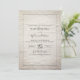 Invitación a una boda con fondo de ladrillo blanco con texto gris oscuro y borde.
