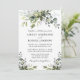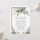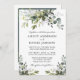 Moderna y elegante acuarela La tarjeta de invitación a la boda de la vegetación botánica incluye hojas de eucalipto, follaje botánico verde, hojas azul polvorientas y otros hermosos paisajes botánicos. Foto de vuelta.