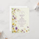 Celebra el amor rodeado por la belleza de la naturaleza. Este diseño presenta delicadas flores silvestres en tonos suaves morados, amarillos y dorados, creando un marco botánico romántico sobre papel texturado. Con su fresco estilo pradera y su encanto vintage, es perfecto para bodas de primavera o verano, ceremonias rústicas de jardín o celebraciones rurales. Personalizable completo con tus detalles para un toque atemporal y personal.